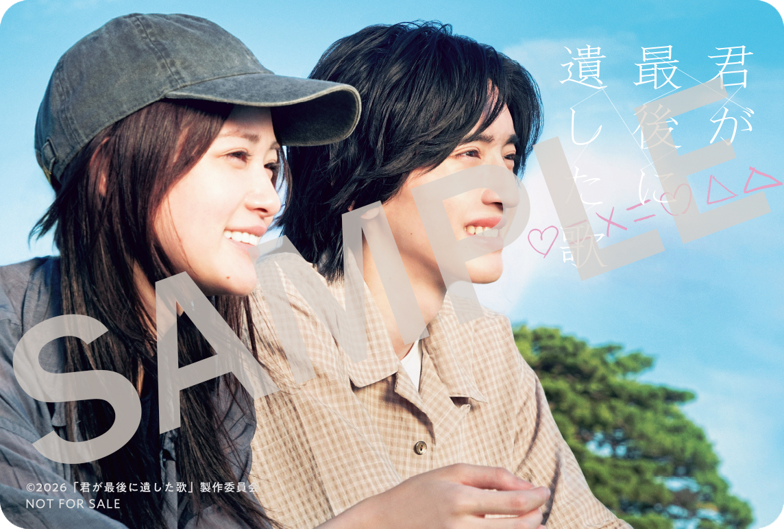 澄み渡る青空の下、同じ方向を見つめる春人(道枝駿佑)と綾音(生見愛瑠)。その表情は、“笑顔”、そして“泣きそうな顔”にも見える、胸を締め付けるような複雑な表情。二人はどんな想いを胸に抱き、視線の先には何が広がるのか。二人の“10年愛”を象徴する、本編のとある大切なシーンを切り取った入場者プレゼントが完成しました。きっと映画を観た後には、この場面の印象が大きく変わるはず。映画の思い出や感動がいつでも鮮やかに蘇る、スマートフォンのケースにも入れて持ち運べるサイズの「クリアカード【私たちが最後に遺した歌】」。二人の10年愛の物語を身近に感じられるオリジナルプレゼントです。